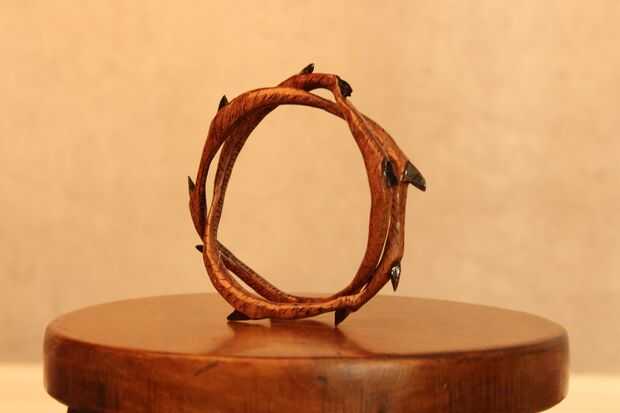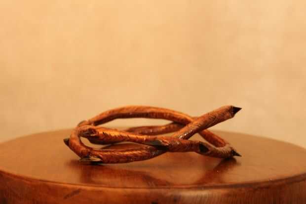 Con la pulsera en pedazos (si no tienes suerte como yo), enfocar los puntos de las espinas y alrededor de los bordes a cada lado. También he intentado hacer las espinas paralelo punto hacia el exterior y que las bandas como envuelve alrededor.