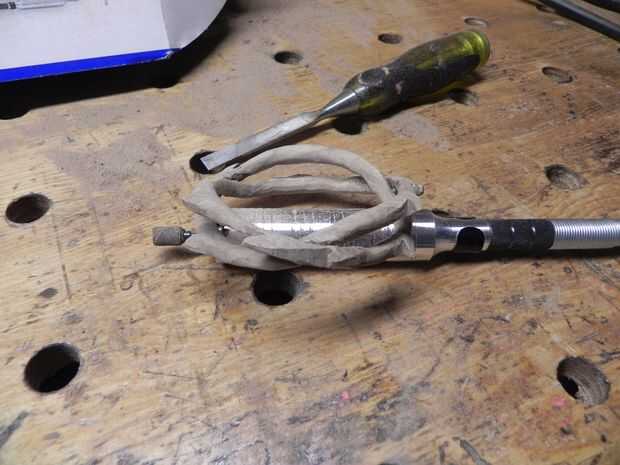 Una vez que estés feliz con la forma, utilice una estufa de leña para las espinas negras de la antorcha y agregar escamas alrededor del cuerpo. Opté por líneas paralelas en el interior y ángulo hashes en el exterior. Después de agregar el resto de los detalles, pegar la pulsera Junta y cabeza a la sala de acabado.