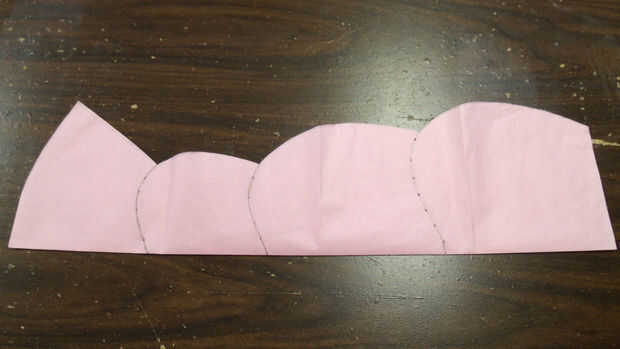 Una vez que tenga un patrón, ábrala y trazar sobre espuma delgada o ligeramente el perno para bateo edredón ligero. (Estoy usando espuma tapizado automotriz, pero que no siempre está disponible. De hecho, compré varias hojas del mismo en una tienda y deseo que podría conseguir más de lo mismo.) Cortar el relleno.