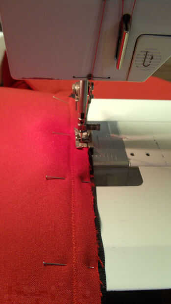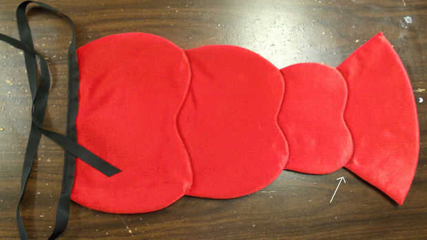 Medir un trozo de cinta de grano grueso tiempo suficiente para ir alrededor de la cintura y atar un arco. Encuentre el centro de la cinta y la clavija a la parte delantera del centro de la cola. Asegúrese de que el borde superior de la cola es justo debajo del borde de la cinta. Usando una puntada más ancha, cosa a lo largo de la parte superior para unir todo.