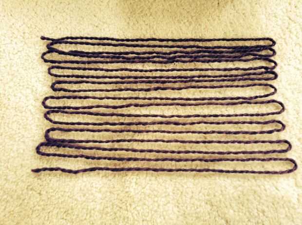 Tomar un color de hilo y poner en cantidades iguales cerca de 20 veces. (El mío es como 18)