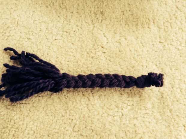 Cortar los extremos en un lado y trenza hacia abajo de un nudo en el otro extremo