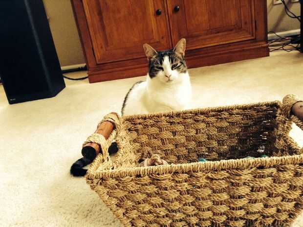 Tomar otro pedazo de cuerda y atarla fuertemente alrededor. El lo cepillo con el cepillo del animal doméstico... Y es mi gato al azar