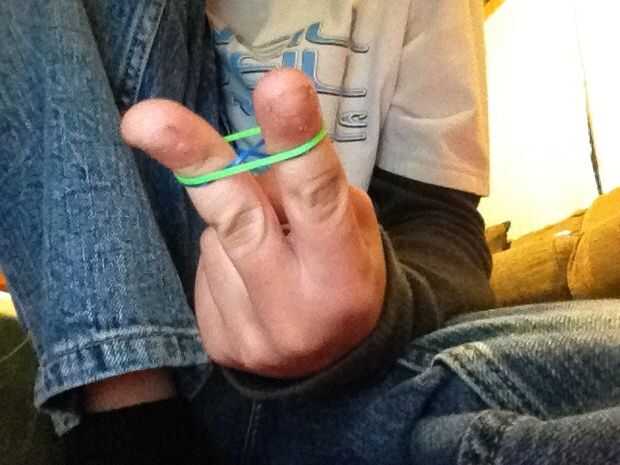 Usar la otra mano para poner la siguiente banda en (no en la figura 8).
