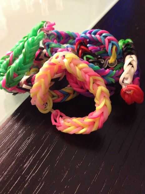 manera fácil de hacer una pulsera de cola de pescado en cualquier lugar.Paso 1: materiales Todo lo que necesitas esSu elección de colores de gomasy un clip C o SPaso 2: Poner la primera banda de goma de color en una figura de ocho en los dos dedos. P