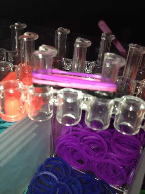 manera fácil de hacer una pulsera de cola de pescado en cualquier lugar.Paso 1: materiales Todo lo que necesitas esSu elección de colores de gomasy un clip C o SPaso 2: Poner la primera banda de goma de color en una figura de ocho en los dos dedos. P