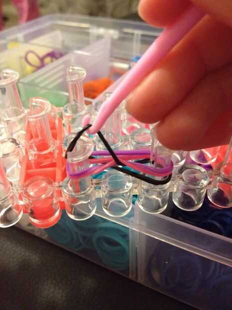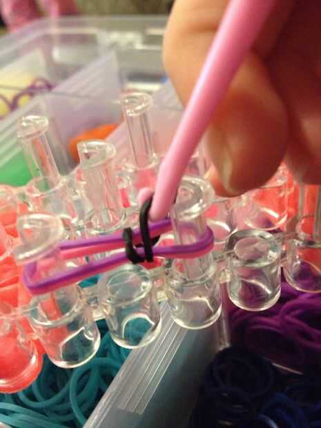 así es como luce la pulsera de cola de pescadoPaso 1: Tomar una de sus bandas de goma y enrosque en un ochoPaso 2: Colocarla en el telarPaso 3: Añadir una banda elástica que no se tuerce en un ochoPaso 4: Agregar otra banda de gomaPaso 5: Tomar su ga