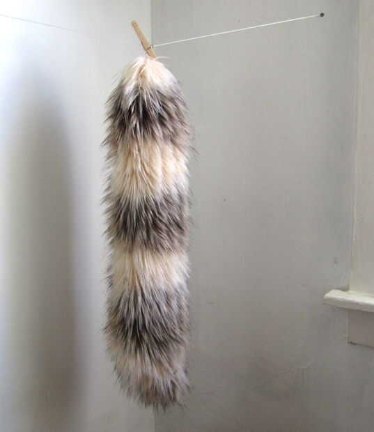Yo he conectado mi cola de piel sintética con un alfiler, pero uso lo que se siente cómodo con.