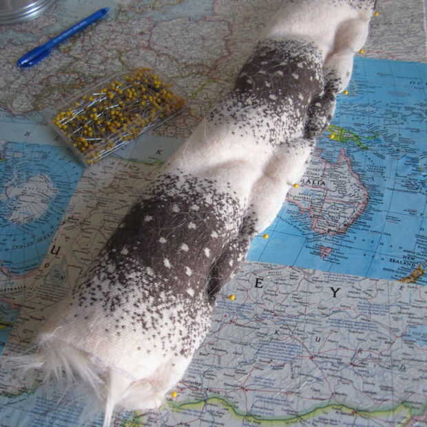 Pasador de la cola Junta todo el camino hasta el borde abierto. Se deja el extremo opuesto de la parte inferior de la cola abierta. Como prender, meta la piel dentro de la cola. Prender cada 2-3 pulgadas - usted quiere que sea agradable y seguro. Cuando haya terminado, todo el pelo debe estar dentro del borde abierto. El único pelo que sobresaldrán es la apertura de la cola.