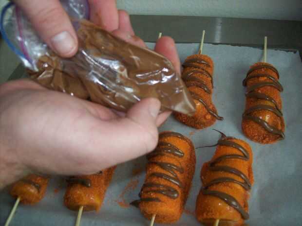 Utilizar cualquier chocolate que disfrute y derretimiento alrededor de 1/4 taza de él según las instrucciones del envase.  Vierta el chocolate derretido en una bolsa de plástico pequeña y cortar una pequeña porción de una esquina de la parte inferior para hacer un pequeño hueco.  Apriete la bolsa al pasar por encima de las colas"naranja" y convertirlos en "cola de tigre" haciendo las rayas.