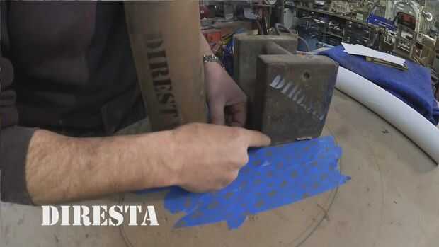 A veces desea crear un patrón en un piso pero hay no se puede mover objetos que dificultan con otros métodos (representado por el peso de acero en este ejemplo).