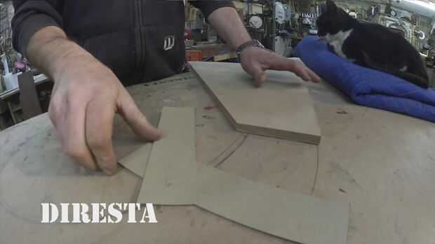 Asegúrese de que ellos se superponen y encolarlos. Una vez que el pegamento se haya secado, cortar el cartón en los dos puntos donde se superponen las tiras. Ahora puede utilizar los patrones para determinar los ángulos de los cortes en la sierra trozadora.