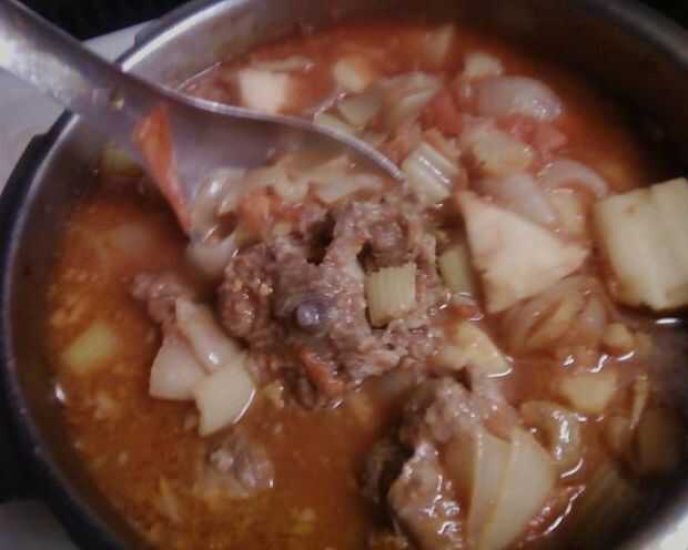 9. 1 + hora: revuelva el guiso suavemente para mezclar las verduras y la carne. Prueba la carne y verduras, si no son lo suficientemente tiernos, ahora puede convertir el calor a medio y cocine hasta que la carne se caiga de los huesos y las verduras estén tiernas (es generalmente suficiente en este punto!).