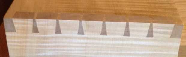 Colas de Milano son uno de los más bellos y funcionales juntas que un carpintero puede hacer, pero también uno de los más lentos y frustrantes si lo haces a mano. Unirse a dos tableros con, digamos, 5 colas de Milano consiste en 22 cortes de sierra separada incluso antes de empezar a retirar los residuos entre las patas y colas (que es 88 cortes por cajón - o sobre 1000 cortes para el pecho de 10 cajones de la que fue tomada la foto de arriba). Con todos estos recortes que necesitan estar en el lugar correcto, en el ángulo correcto y la plaza en las otras dimensiones, la posibilidad de error es grande. A menos que ha pasado mucho tiempo perfeccionando su técnica, haciendo un sistema de cajones con cola de Milano esquinas manualmente es una tarea desalentadora. No sorprende, entonces, que un conjunto de ayudas están disponibles para los aficionados (y profesional) para hacer la tarea más fácil y más rápido. Éstos implican generalmente una máquina fresadora, algunas brocas especiales y una plantilla u otro método de guiar los cortes. Hay una serie de desventajas para estos métodos, además de la muy significativa inversión en equipamiento que no puede ser utilizado con mucha frecuencia. Router-corte juntas a menudo se dicen que buscar obviamente "hecho a máquina" (pernos flacos están hacia fuera); rasgue-hacia fuera puede ocurrir que las ruinas de la mirada; y las plantillas más baratas no tradicionales "a través de" colas de Milano.