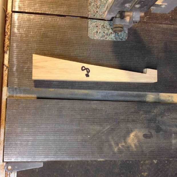 Usted tendrá que cortar a los espaciadores de la anchura especificada, idealmente de una madera estable o MDF. Usted también necesitará una plantilla para hacer la cola, corte de una madera similar. Para cortar el uso de la plantilla el modelo ilustrado en la foto - hace aproximadamente 10"(250mm) de largo y con una sección diagonal en el ángulo ha elegido para su cola y la"muesca"en ángulo recto a este. Las dimensiones no son críticas, pero el ángulo (y la muesca derecho-anguloso) tiene que ser exacta.