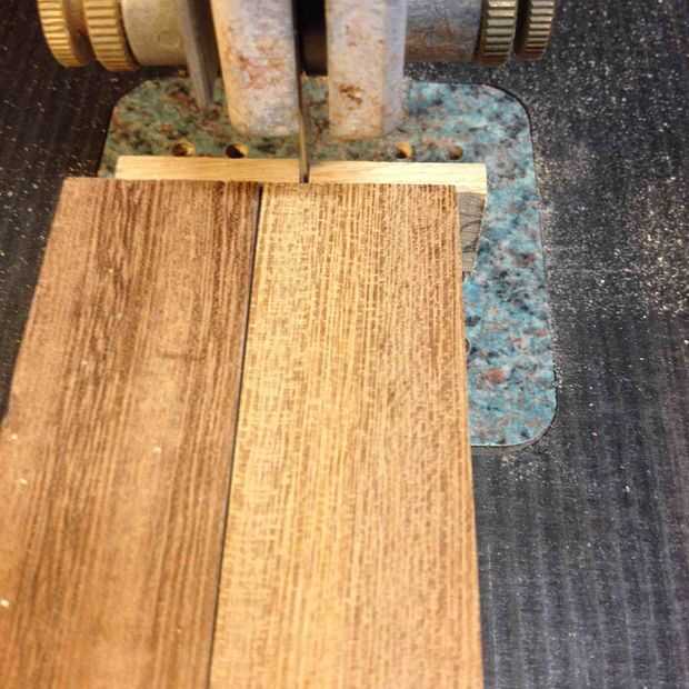 - Cortar con la mayor precisión posible (mejor es una sierra de mesa con una hoja fina, pero terminar con un plano y papel de lija pegado sobre una superficie plana). En particular, garantizar que los bordes son lisos y paralelos. Si los anchos son muy ligeramente apagado entonces ello solo colas de tamaño ligeramente diferentes - el empalme caben tanto los espaciadores se numeran y se utiliza siempre en el mismo orden.