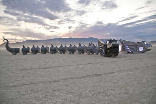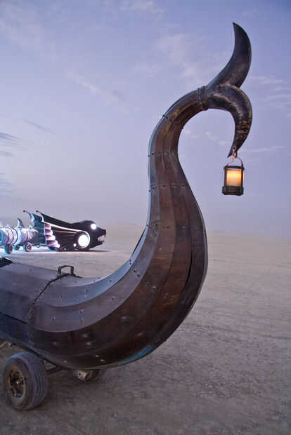 Jon & Kyrsten tenían un gran, gran idea : para hacer un par de 50' de largo coches de arte, dos serpientes, una luz y una oscuridad, basan en la mitología antigua con un tema 'viking sky' y lleno de LEDs programables. ¿Cómo podría uno resistirse a ayudar con algo tan impresionante?