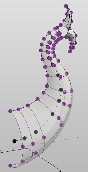 Ahora que tuve la forma general, podría añadir más secciones que, por lo que he podido conseguir mejor control de la forma. Lo necesitamos para curva y forma cónica hacia el final de una manera más agradable que el loft inicial fue. Mientras que podríamos han dibujado un montón de curvas primero y luego abuhardilladas exactamente lo que queríamos que la primera vez, siempre me ha parecido lo más rápido que simplemente la forma general del modelo y luego retocarlo en lo que estoy buscando en su lugar.