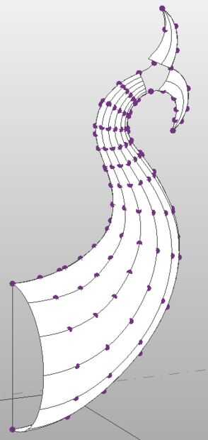 Ahora sólo necesita para 'aplanar' la piel hacia abajo en contornos planos de corte. Esto resultó para ser muy difícil de hacer correctamente. Hemos intentado un número de cosas y al final terminó con Rhino para realizar el trabajo. Lamentablemente esto fue porque Revit no puede revelar cosas, Inventor no es tan bueno que formas complejas como esta, y los plugins bien que puede hacer ese trabajo dentro de Inventor tienen un precio fuera del alcance de simples mortales como nosotros!