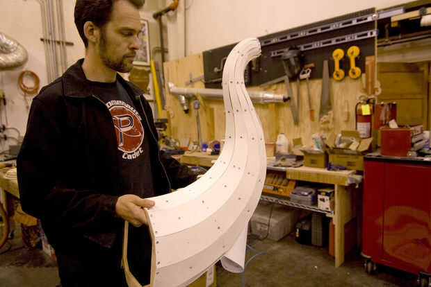 Una vez que tuvimos lo que ahora estábamos llamando los 'paneles' modelados, hicimos algunos prototipos! Tratamos de hacer lo posible para que podemos probar nuestras hipótesis e ideas tan pronto como sea posible. Es muy fácil de hacer prototipos de escala 1/2 o 1/3 cuando se trabaja con la fabricación digital. El prototipo realmente ayuda a traer problemas temprano, cuando todavía hay tiempo de hacer algo por ellos. Corte los paneles de madera contrachapada, había les había ranurado juntos, entonces cortar la piel de una hoja de plástico PVC flexible y sólo había atornillado al bastidor con tornillos pequeños para madera.