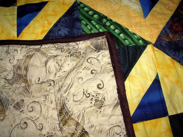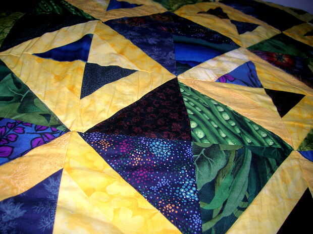 Estoy realmente orgulloso de la selección de la tela; los patrones fueron seleccionados para la naturaleza-orientado - y específicamente no-florales, como el receptor era un niño. Amarillo contra azul y verde es uno de mis contrastes de color favorito.