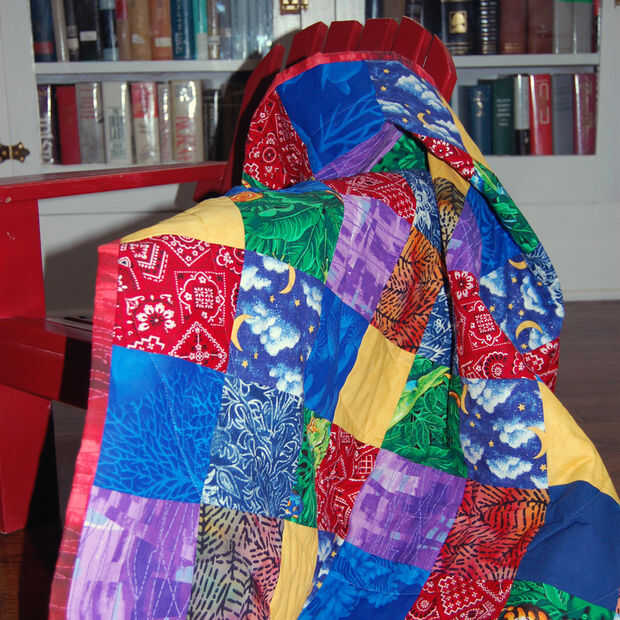 Materiales: tela colorida 64 cuadrados 4.5" x4.5", respaldo material 40 "x 40", edredón bateo 40 "x 40", cortar cuatro tiras de 2 "x 40" material obligatorio.