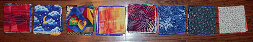 ordenó un montón de triángulos de troquelado de un catálogo y cuando llegaron, hubo muchos, muchos pares de tela que empareja. Después de mucho cambio de piezas, decidí "pedazo de la tira" una colcha de bebé bloque. Aunque difícil de ver, se con