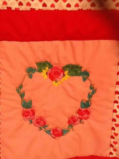 Corazón en ellas. Tuve que cambiar el hilo por lo menos 12 veces en