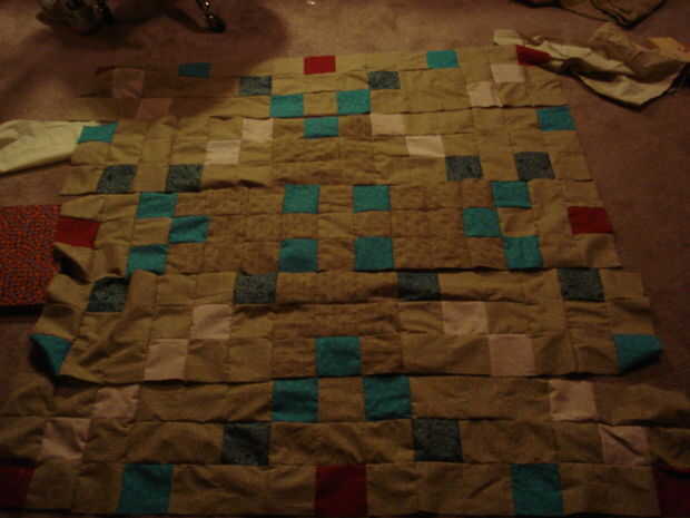 Coser los bloques en filas según la plantilla en el paso 2, tratando de alinear las costuras.