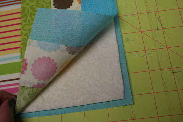 Cuando tengas todas tus capas colocadas, necesita Hilvanarlos. Solo puede prender, como lo he hecho, o aerosol Hilvanar... lo que hace el trabajo. Generalmente odio usando pernos rectos para hilvanar un tejido, pero estos pequeños bloques requieren tan poco que no es gran cosa para mí.