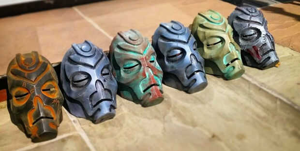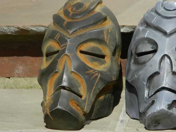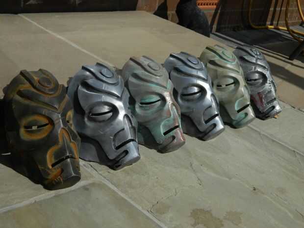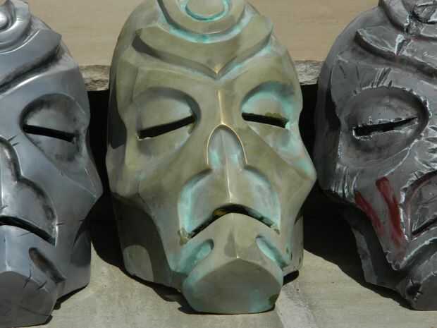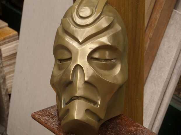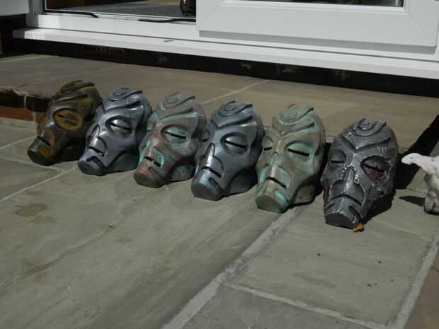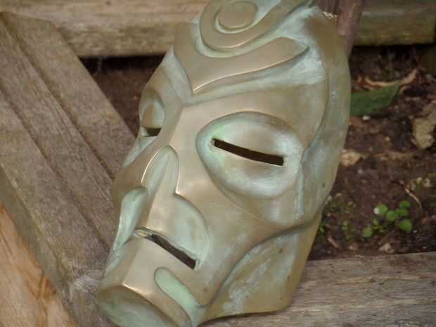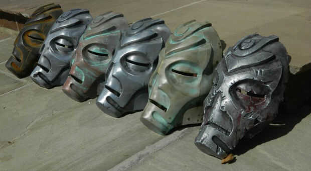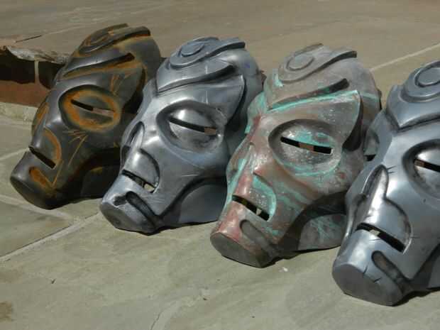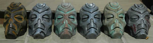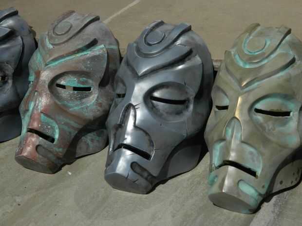 Estuve recientemente encargada para hacer una máscara de Morokei dragón sacerdote de Skyrim. Decidí que ya que no pude encontrar el color perfecto de Morokei tenía en mente una pintura metálica regular, utilizo técnicas de fundición a presión a frío para crear un acabado realista de metal exactamente como había imaginado. Esto condujo a muchos experimentos en diferentes metales, utilizando diferentes técnicas para producir patinas y efectos atmosféricos.
