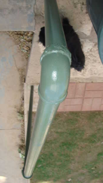 Aquí hizo pasamanos de tubo oxidado viejo y cuplings que sueldan con autógena juntos.  Les pinté porque veía feos.  Ahora me gustan.