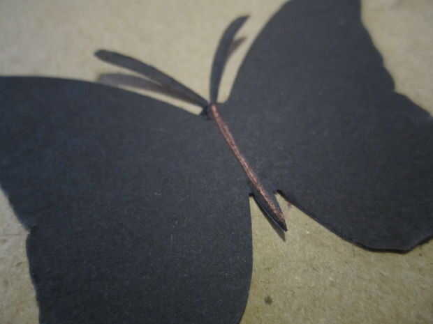* Utilice un bolígrafo o un objeto puntiagudo (pero no aguda) para dibujar una línea abajo del centro de la parte trasera de la mariposa. Esto hace más fácil de doblar.