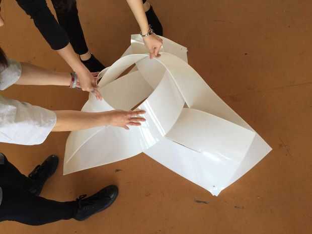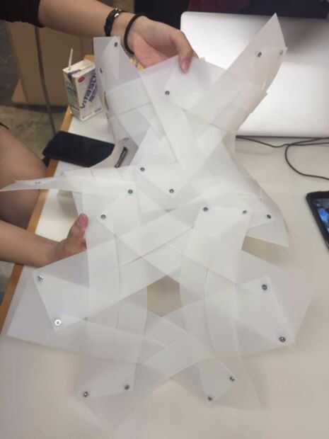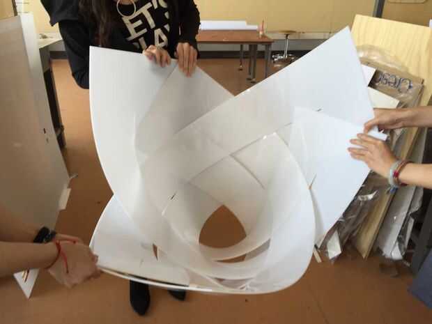 hojas HDPE (polietileno de alta densidad) de 1/8 se utilizaron para los pedazos más grandes de muebles (mesa, sillas), y polietileno de 1/32 hojas se utilizaban para los pedazos más pequeños de muebles (Fruteros, lámparas, jarrones). Las propiedades del material fueron examinados y simulados principalmente a través de modelos físicos y las pruebas, mientras que estudios preliminares digitales utilizando Herramientas doblatubos también se integraron a anticipar y diseñar el trabajo futuro.
