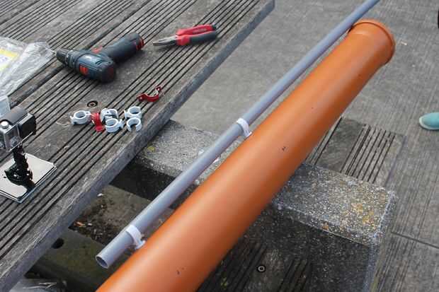 Ahora Perfore 4 orificios en cada superoderecho del tubo grande a 1,2 m de la parte inferior y otro 4 a 1,5 m de la parte inferior.