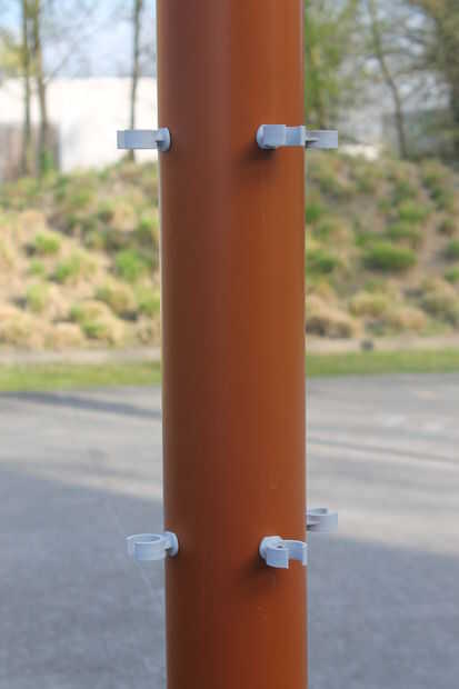 Sujete los broches de presión de tubo (C) en los agujeros con los tornillos.
