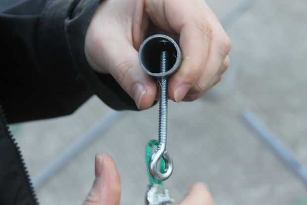 Ahora coloque el tubo pequeño en el tubo grande, perno de ojo de vuelta fuera.
