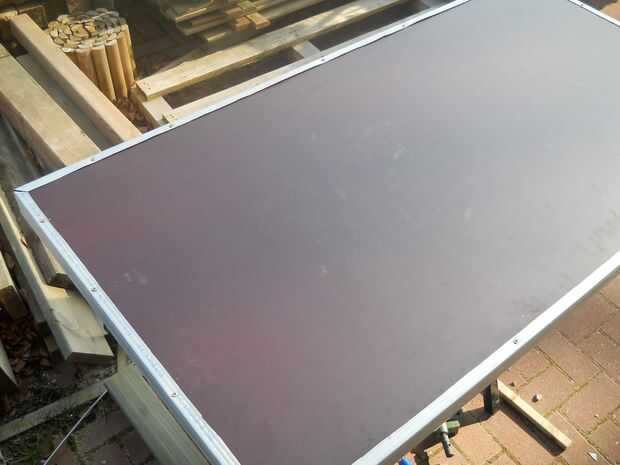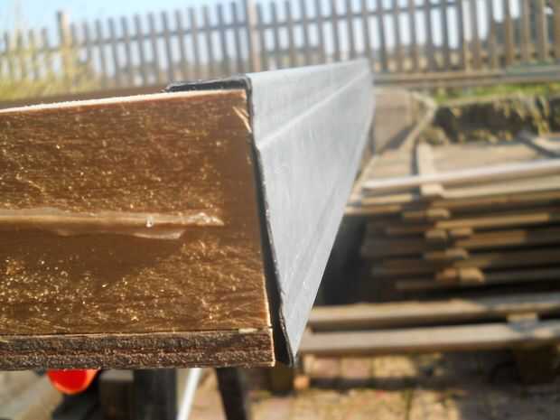 Una tira de madera atornillada en la placa de madera para crear el marco. Luego se recortan los perfiles en U alrededor.
