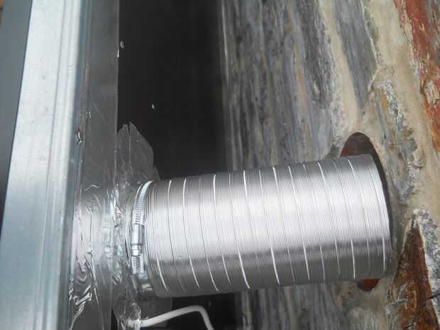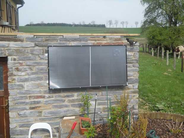 He tenido ya dos agujeros de 125mm de la pared. Uno en la parte frontal que es exactamente el lado sur y uno en la parte trasera. Un tubo de aluminio conectado al calentador solar va en el interior.