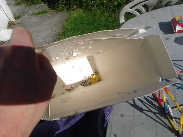 Algunas de las municiones caerán al fondo de la caja cuando usted saca el periódico, pero la mayor parte de se pegado en algún lugar entre las capas de periódico.
