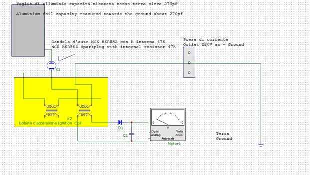el otro polo de la bobina de encendido secundario de baja tensión está conectado a través de un diodo al polo positivo del voltímetro