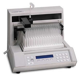 "Fracción colector A fracción detector es un dispositivo que permite a regular o especifica las muestras para ser tomado de un eluído de la columna y almacenados en forma recuperable. Los recipientes del almacenaje son generalmente pequeños tubos o frascos que se orientan en un disco giratorio o en una correa móvil, allí movimiento generalmente es controlada por un microprocesador. Al recibir una señal desde el microprocesador, el siguiente frasco se coloca debajo de la salida de la columna y el efluente recogido hasta recibir otra señal de la computadora. Una vez que las propiedades del cromatograma que describe la separación ha sido comprobada, puede definirse el programa de colección. Las fracciones se pueden recoger en una base de tiempo o a intervalos regulares o a momentos específicos para recoger picos específicos. Alternativamente se pueden recoger las fracciones mediante el control de la salida del detector y cuando un pico se inicia a fin de eluir el colector de fracciones se activa y el pico recoge en un vial específico. Cuando el pico vuelve a la línea de base el eluido de la columna entonces se dirige a perder hasta que salga el siguiente pico liberador. Colectores de fracción son de uso común con Cromatógrafos más líquidos. Se utilizan para recolectar muestras para posterior purificación, la examinación subsecuente de técnicas espectroscópicas o por pruebas organolépticas o biológico."