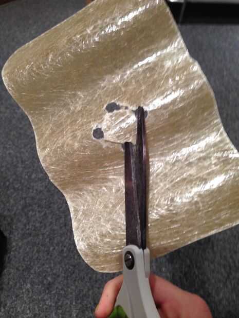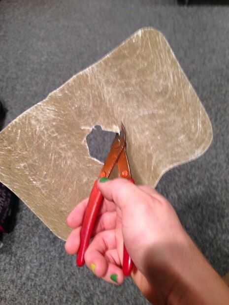 Cortes rectos fueron hechos muy cuidadosamente y lentamente entre los cuatro agujeros con las tijeras. Utilicé un cortador de micro corte al ras para hacer el cuadrado áspero en un círculo.