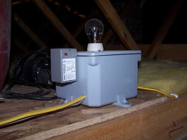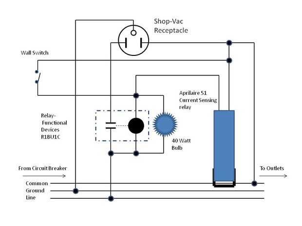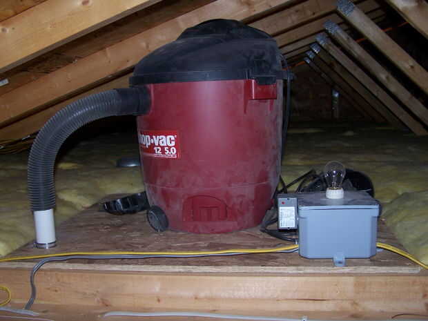También he añadido un interruptor de pared directamente en el sensor de corriente Aprilaire para ayudar en la limpieza de la tienda. El interruptor energiza el relé para empezar el vacío directamente, por lo que se puede conectar una manguera de 20 pies para limpiar el piso.