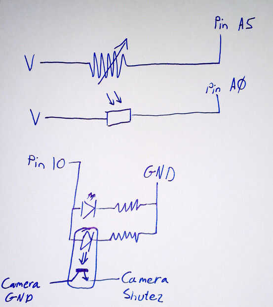 * Tenga en cuenta que en el diagrama me olvido poner una resistencia de la fotocélula a tierra, como está escrito a continuación.