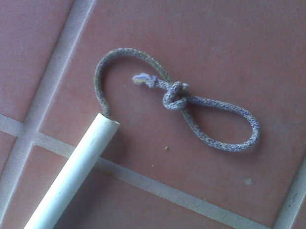 Como tirar de la cuerda el nudo se aprieta, la serpiente hacia el extremo de la varilla de tracción, aprieta la soga. Es hasta usted qué pasa con la serpiente!