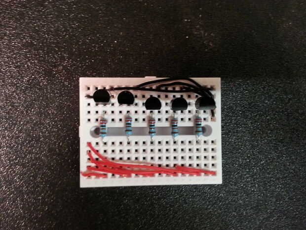 El siguiente paso en el proyecto es para rellenar un protoboard con resistencias de los sensores. Cuando estés listo para instalar el controlador, pero por ahora sólo vamos a insertar en el protoboard donde irá el cable cuando se instala, puede soldar los sensores al alambre calibre 22. (Yo también incluye archivos de Eagle si desea hacer un PBC para conectar directamente a los pines que has agregado a la pantalla de LCD). Consulte el esquema anterior para rellenar el tablero de pan.