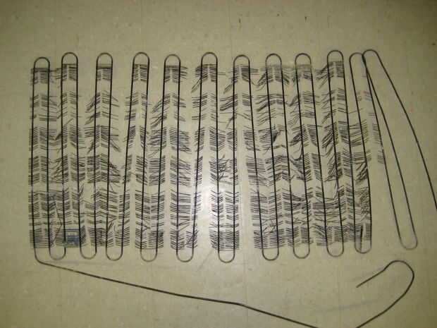 Los cables pequeños que proporcionan el respaldo con apoyo tuvieron que ser quitado para hacer más flexible el metal de la tubería. Esta era la parte más tediosa del proyecto. Si usted puede encontrar un refrigerador del forro caben en el marco de la ventana que el proyecto consume menos tiempo pero usted no tendría como mucho la superficie para que el agua pase a través en el colector.