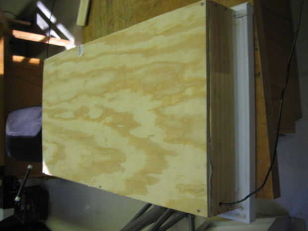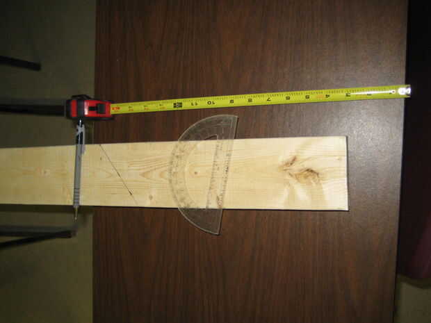 Una vez que el colector ha sido sellado, utilizar el 2 x 4 para hacer dos zapatas para el coleccionista. La latitud donde se construyó este sistema era 36 grados, el ángulo de inclinación del colector fue hecho para igualar la altura. Use el transportador de ángulos, cinta métrica y Sierra para hacer la cimentación. Fije a la parte posteriora con los varios tornillos de madera.