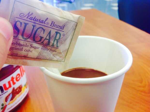 - Tomar una cucharada grande de la extensión de chocolate con avellanas y comienza revolviendo en su café.